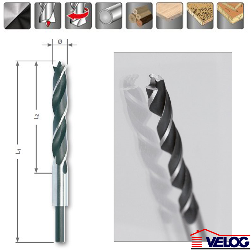 Visoko kvalitetna burgija proizvedena od vrlo otpornog hrom-vanadijum čelika. Zabrušen vrh burgije garantuje precizno bušenje. Sečiva omogućavaju precizno bušenje bez trganja materijala. Ova burgija je idealna za bušenje preciznih rupa za čepove I slično. Na sebi ova bugija sadrži 2 sečiva.