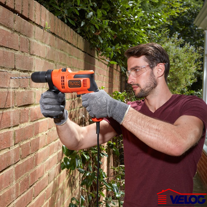 Black and Decker BEH200 Udarna bušilica snage 500 W moćna je bušilica s jednostavnom promenom glave i maksimalnim prianjanjem. Dodatna ručka pruža veću kontrolu, a udarna bušilica je dovoljno moćna za bušenje u beton kao i za svakodnevnu upotrebu kod kuće