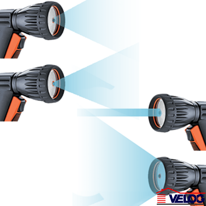 Pištolj prijatan na dodir zahvaljujući obloženoj dršci, garantuje savršeno rpijanjanje u ruci čak I sa mokrim rukama. Zadnji taster vam omogućava da uključite ili isključite vodu I podešavate protok vode sa samo jednom rukom.