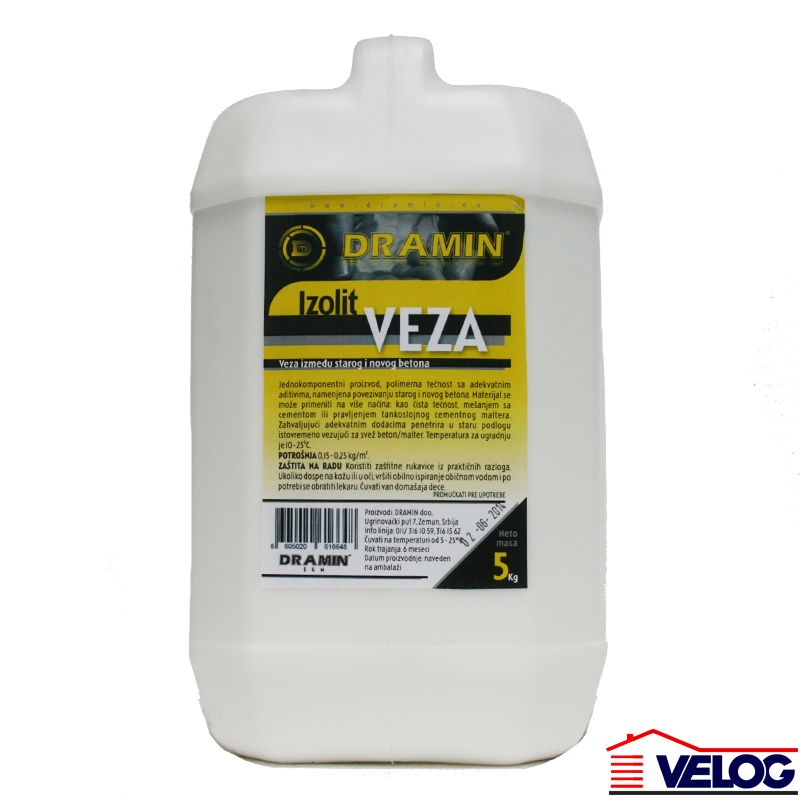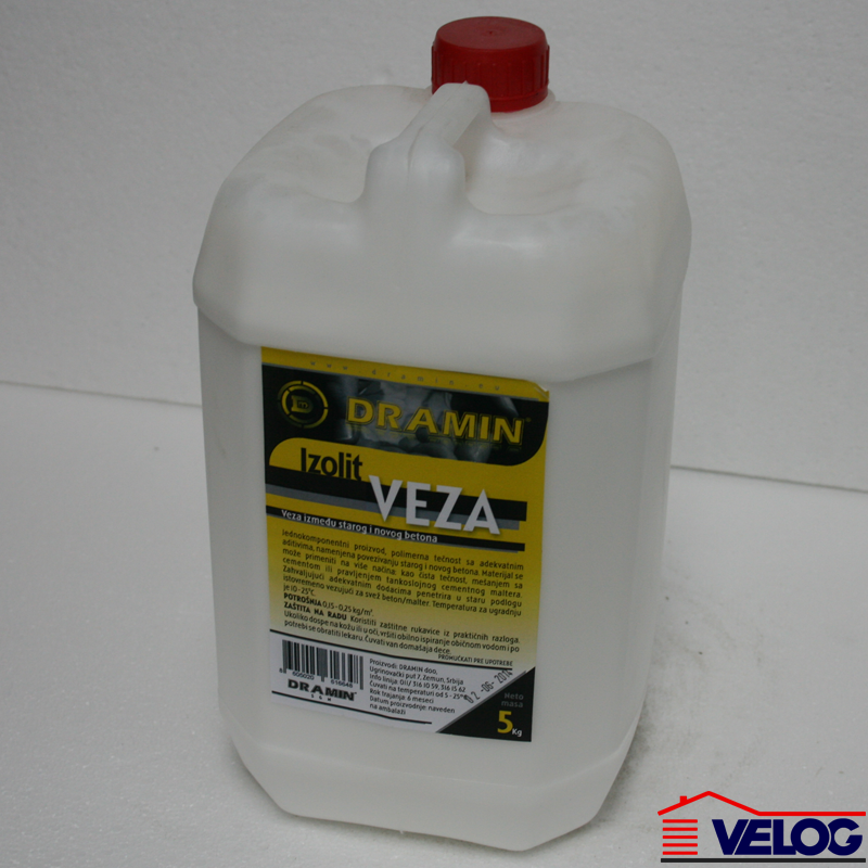 Opis proizvoda Izolit VEZA je jednokomponentni proizvod, polimerna tečnost sa adekvatnim aditivima, namenjena za povezivanje starog i novog betona/maltera. Mešanjem sa cementom dobija se masa koja odlično prijanja za stari i novi beton, pa se na taj način formira veza. Mogućnost aplikacije u cilju dobijanja tankoslojnog maltera.
