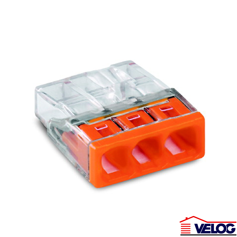 Klema za instalacione kutije Wago 2273-203, 3 kontakta za pun presek 2,5kvmm. Broj kontakta: 3; Radni napon: 450V; Jačina radne struje: 24A; Poprečni presek kabla: 0.5 - 2.5mm (18AWG - 14AWG); Dužina neizolovanog dela žice: 11mm.