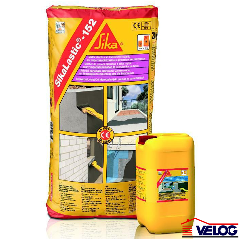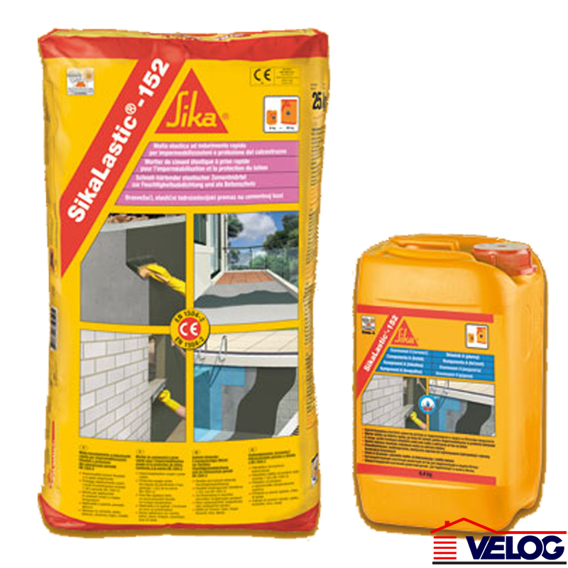 Sikalastic®-152 je dvokomponentni malter, ojačan (armiran) vlaknima, sa vrlo niskim modulom elastičnosti, na bazi cementa, modifikovan sa specijalnim polimerima otpornim na alkalije, koji sadrži agregat sitne granulacije i odgovarajuće aditive za vodonepropusnost i zaštitu betonskih podloga izloženih naponima zatezanja. Sikalastic®-152 je naročito pogodan za aplikaciju u uslovima vlažnih sredina i niskih temperatura. Sika Lastic 152 je dvokomponentni, fleksibilni, brzosušeći, cementni malter za hidroizolaciju i zaštitu betona.