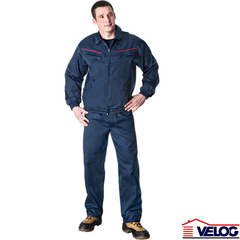 Dvodelno odelo proizvedeno od 65% PE i 35% pamuka, 220-240 g/m2, bluza sa crvenim paspulima i pantalone sa tregerima. Može se koristiti na mnoštvu radnih mesta u građevinskoj industriji, radionicama, automobilskoj industriji, magacinima, itd.